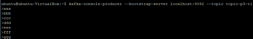 ubuntu@ubuntu-VirtualBox:~$ kafka-topics --bootstrap-server localhost:9092 --create --topic topic-p3-t1 --partitions 3