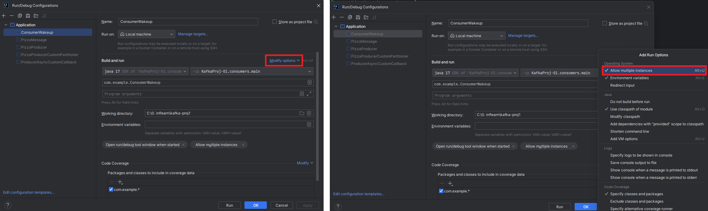 Running Program 토글(우측 상단) > Edit Configurations > Modify options > Allow Multiple instances