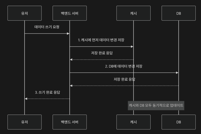 데이터를 저장할 때 캐시와 DB에 동시에 저장하는 방식이다.