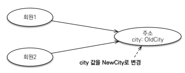 | 정의 | @Entity로 정의하는 객체 | 단순 값으로 사용하는 타입 |