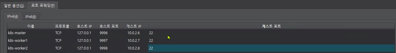 위의 사진은 k8s-master의 예시이고, k8s-worker1과 k8s-worker2의 설정은 아래를 참고해서 설정해야 한다.